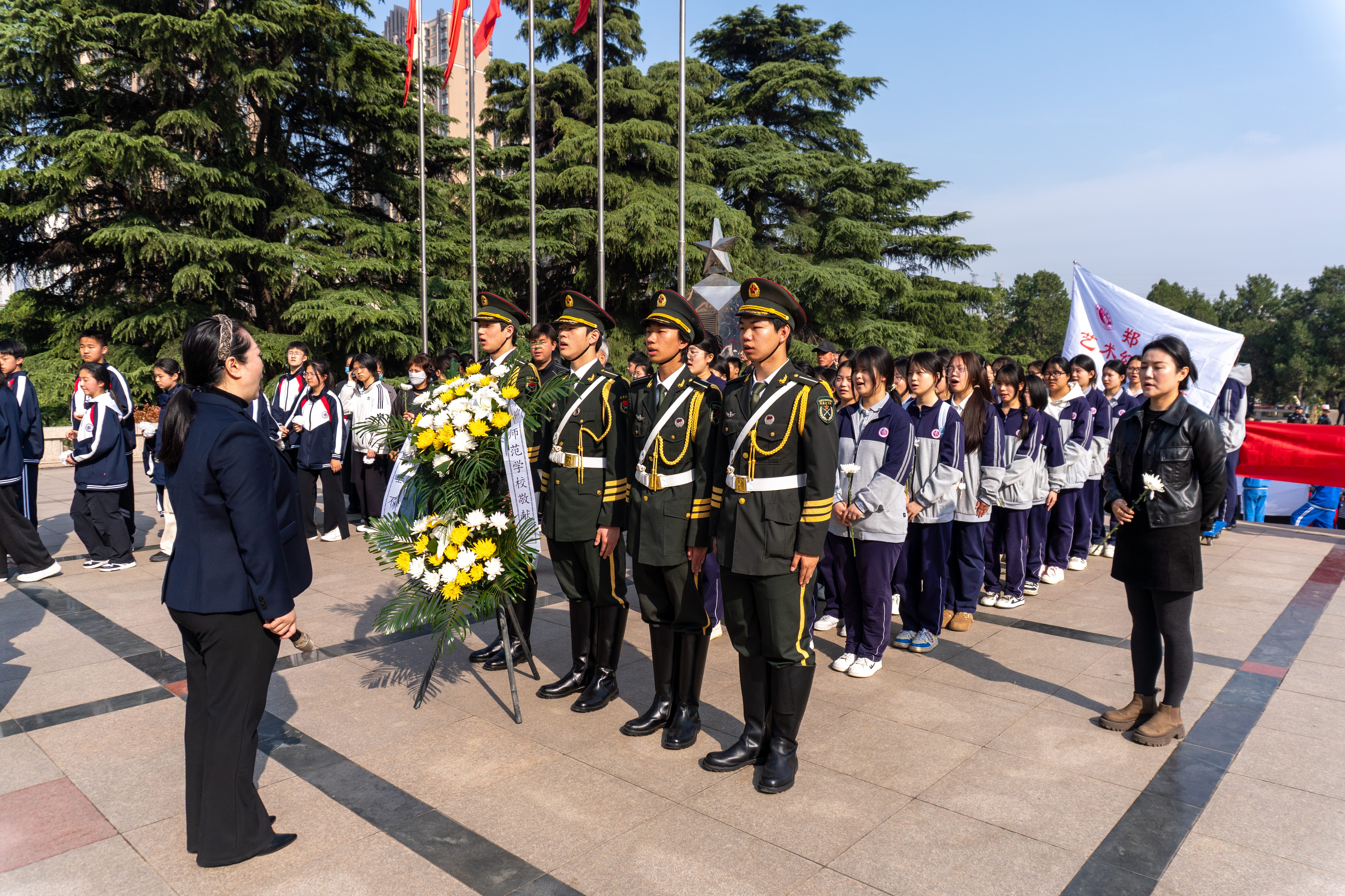 师生们寄托对英烈的深切缅怀与崇高敬意