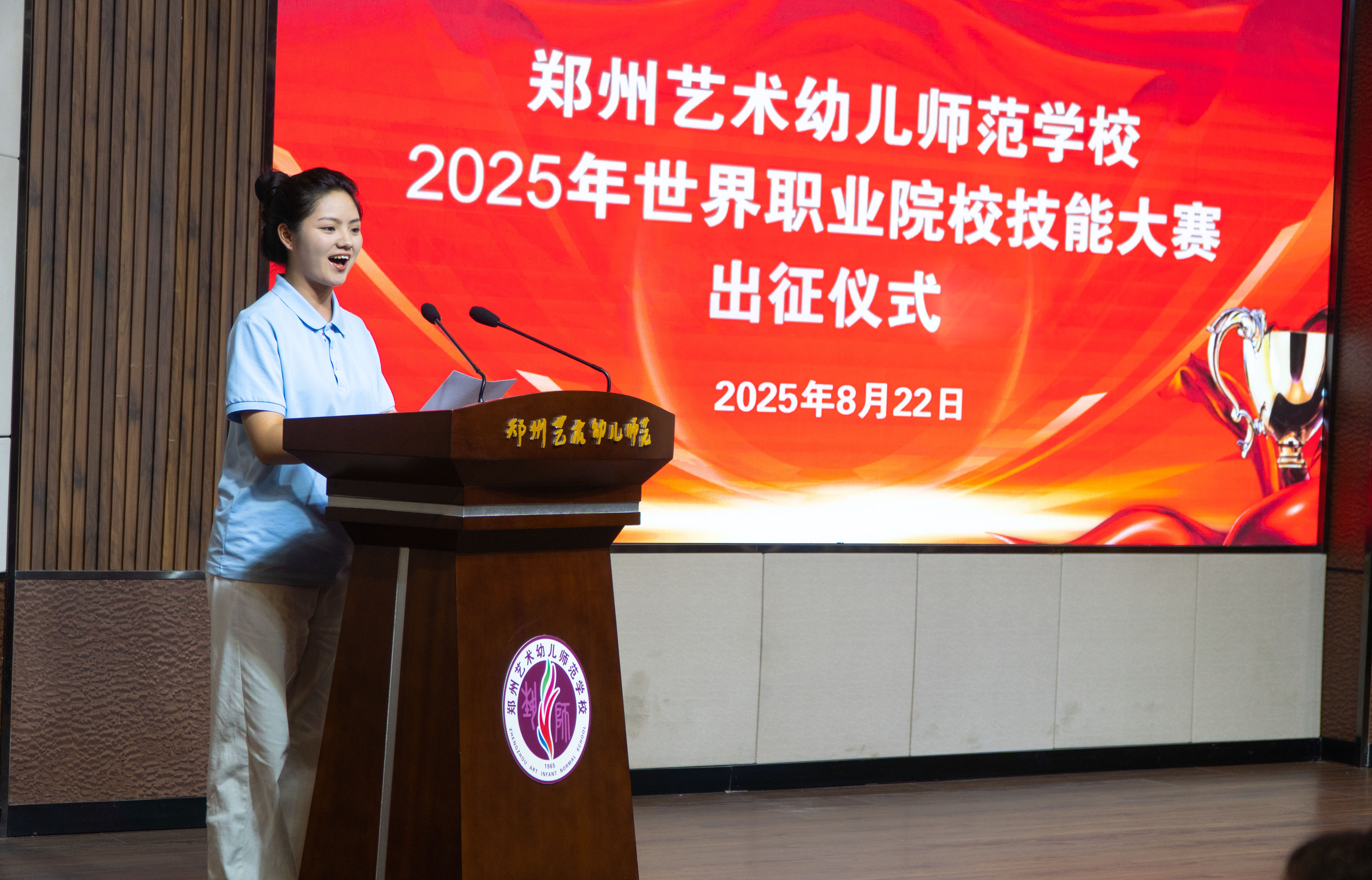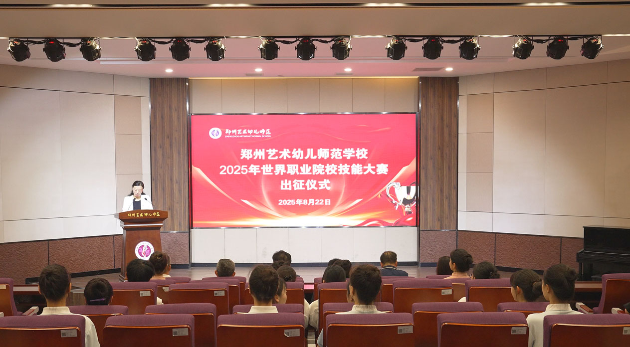 2025年世界职业院校技能大赛争夺赛即将开赛,8月22日下午,郑州艺术幼儿师范学校在学术报告厅举行出征仪式,为即将代表学校奔赴赛场的师生队伍壮行,学校党委书记周卫红携领导班子出席本次仪式,共同见证这一重要时刻。