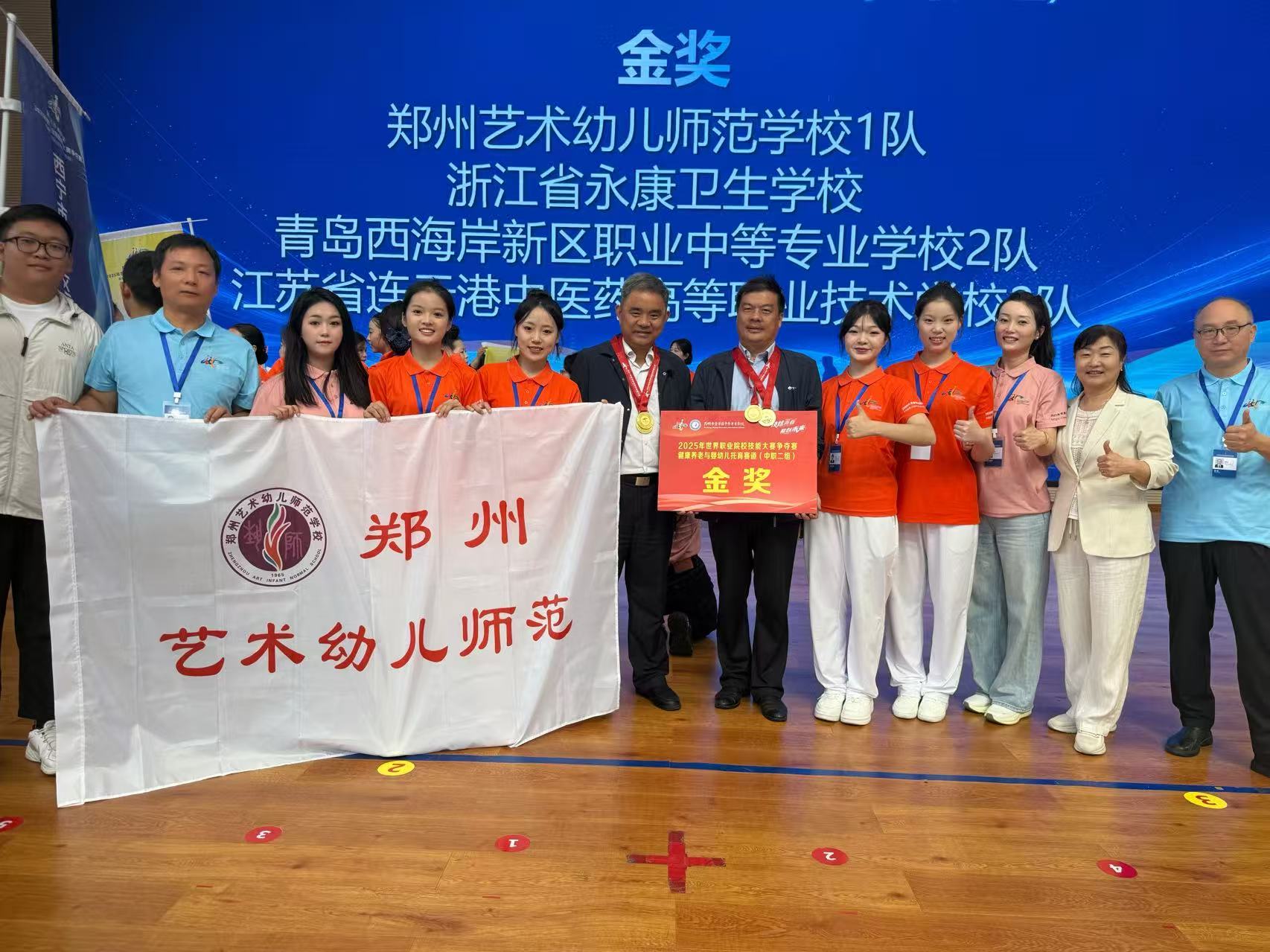 本次大赛以“技炫青春,能创未来”为主题,设置 42 个赛道,吸引了全国职业院校队伍同台竞技。在教育与体育赛道(中职组)的激烈角逐中,学校参赛队凭借扎实的理论功底、精湛的实操技艺和出色的团队协作,从众多强手中脱颖而出摘得金奖。健康养老与婴幼儿托育赛道更是双线告捷,成功将一枚金奖和一枚银奖收入囊中,成为该赛道最大赢家之一。