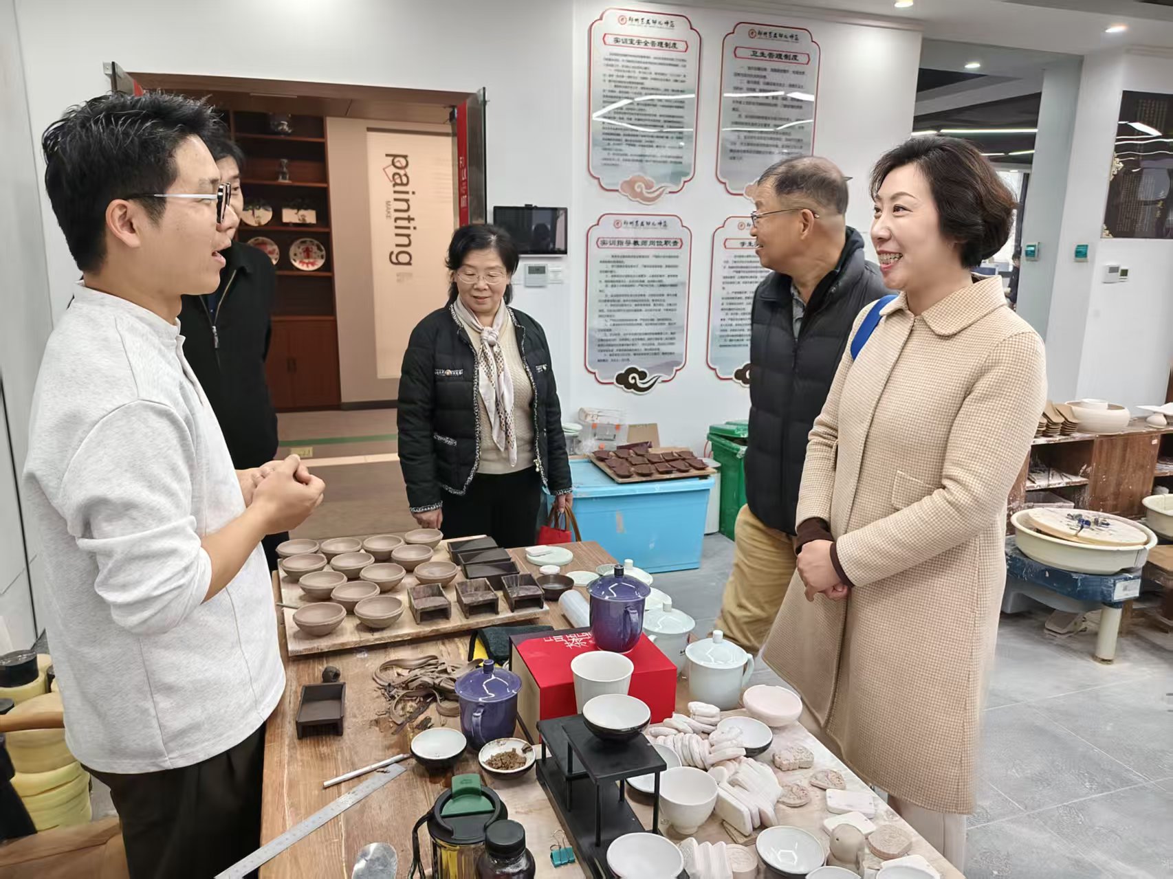 为了进一步了解郑州艺术幼儿师范学校“非遗进校园”活动开展情况,一行人来到该校非遗中心实地参观考察。随后,学校领导与专家团队围绕“非遗教育落地与学校发展”召开专题座谈会。学校党委副书记、校长马进伟详细介绍学校非遗传承发展成果。白露肯定学校“非遗+美育”的探索方向,双方就“非遗进校园”活动、校企合作平台展示等方面进行进一步洽谈。